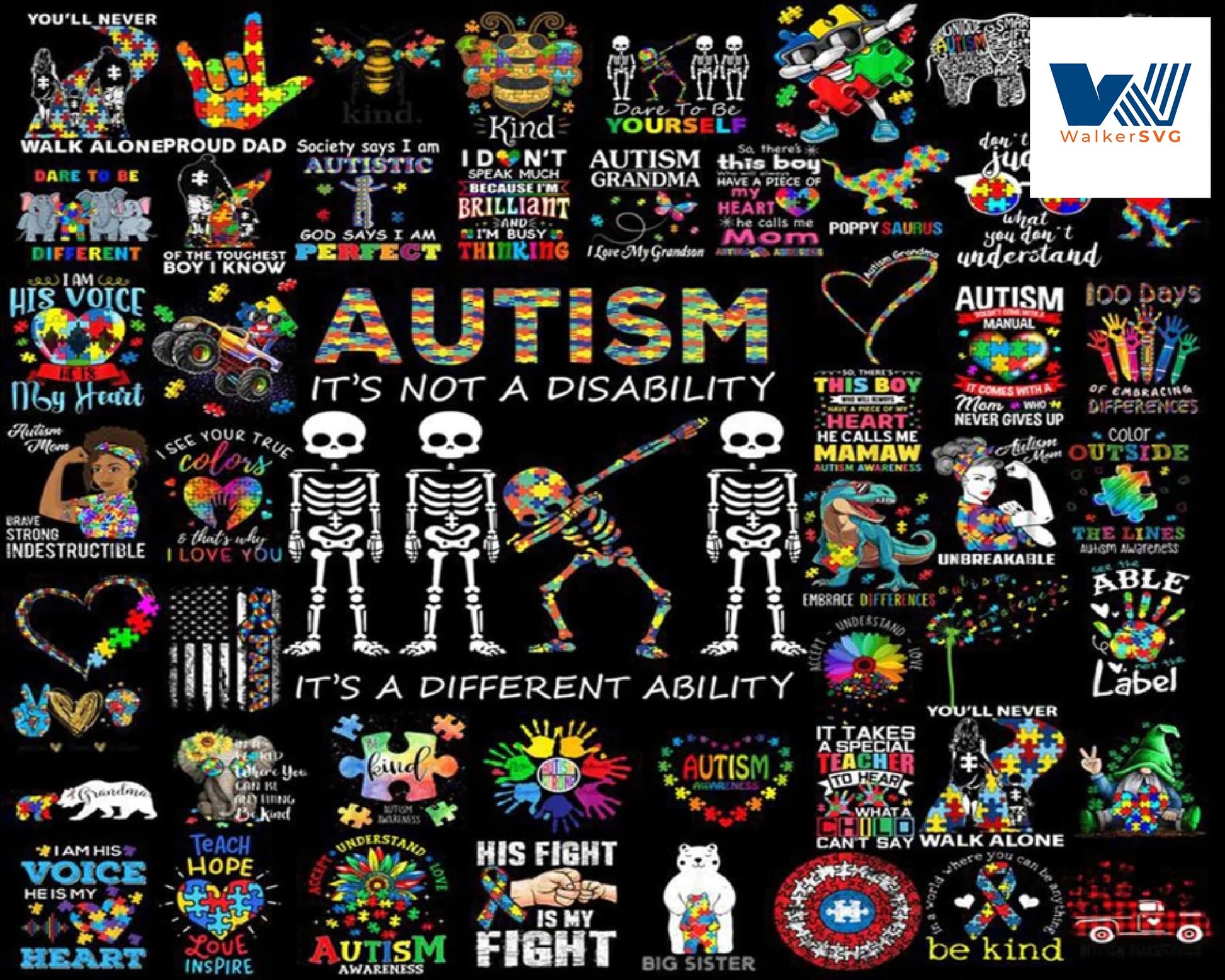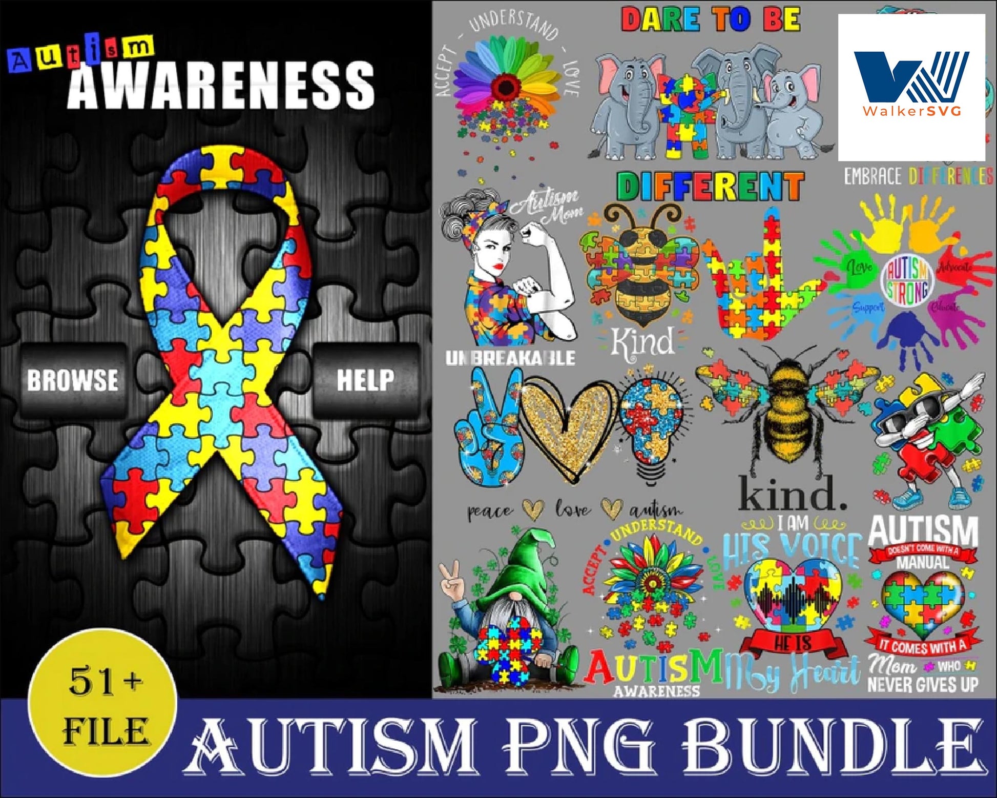 51 Autism PNG Bundle, Autism Awareness png, Autism Bee png , Vector file , Silhouette Digital Dowload