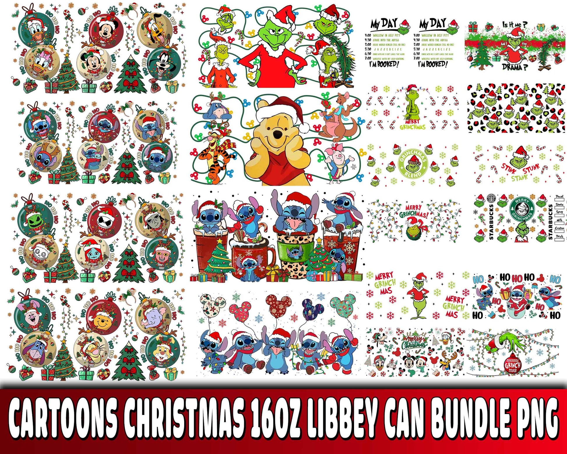 Cartoons Christmas 16oz Libbey Can bundle PNG , Cutting Image, cricut , file cut , digital download ,Instant Download