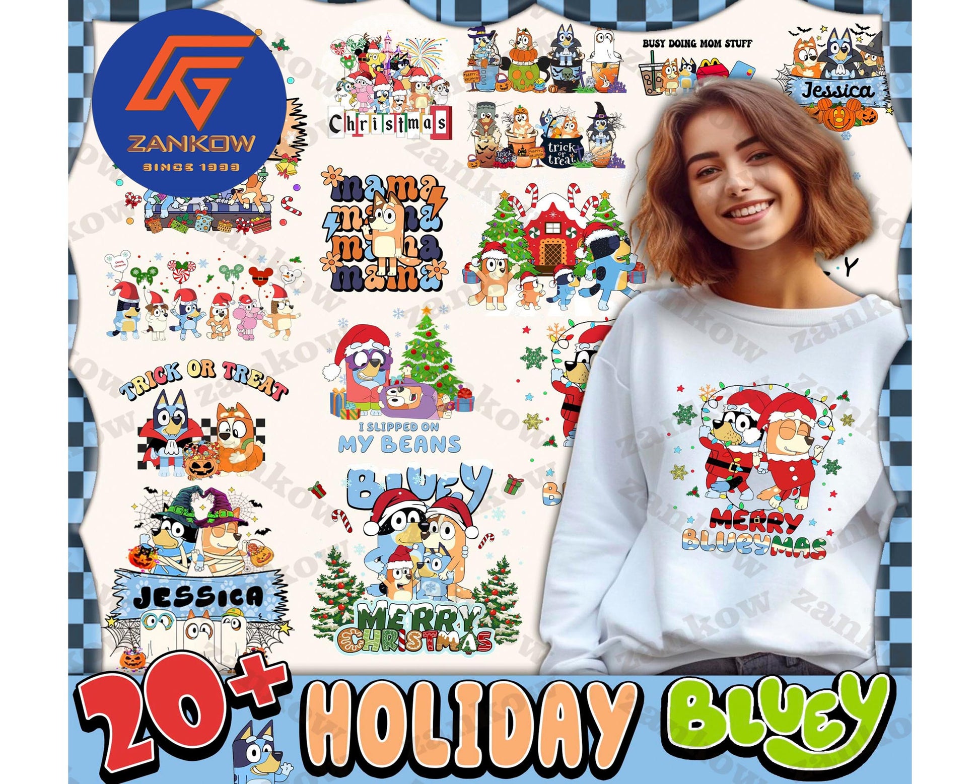 20+ file Christmas Cartoon Shirt Design Png Bundle, Blue Dog Family Holiday Png, for Cricut, Silhouette, digital download, file cut