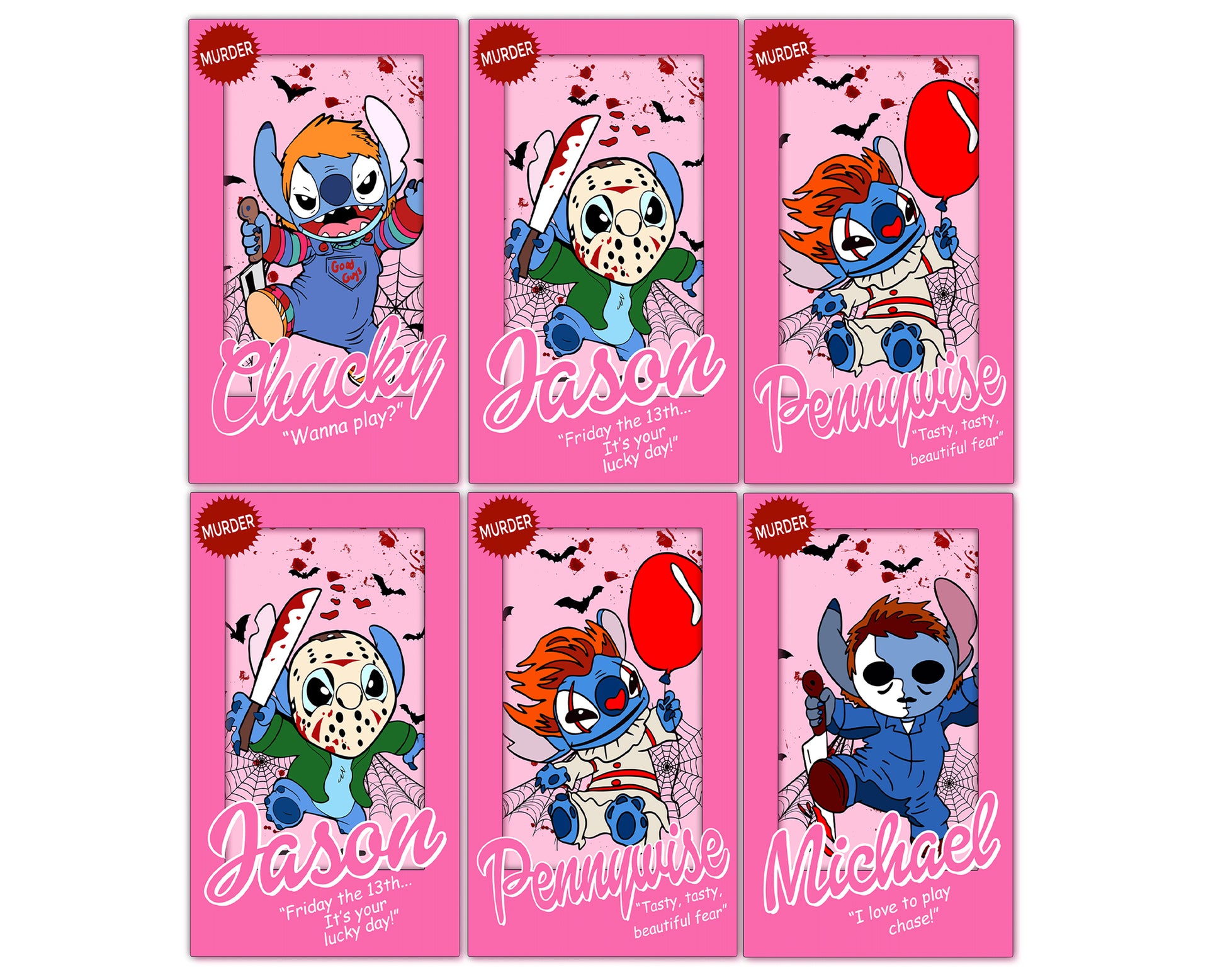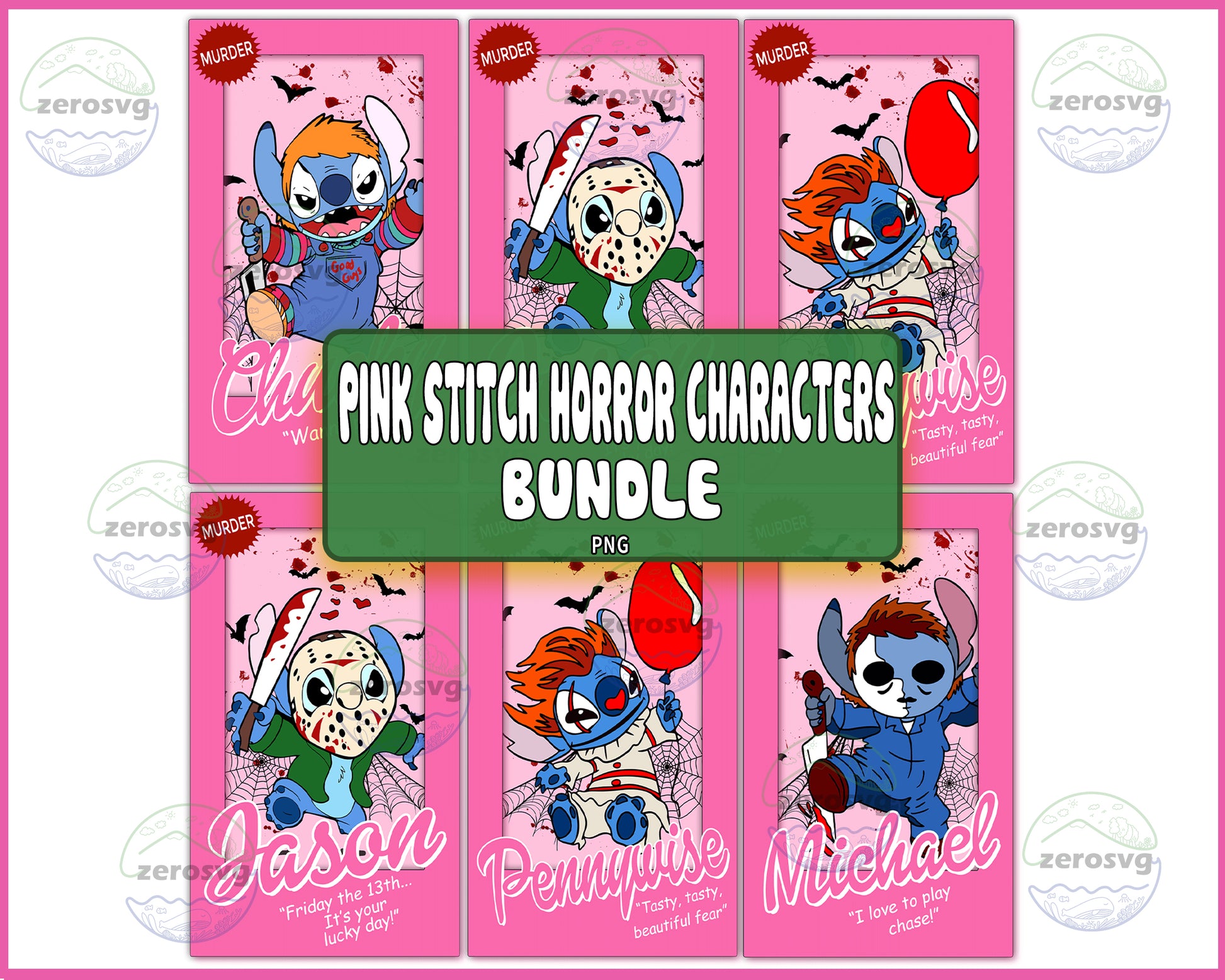 6 file Pink Stitch Horror Characters Bundle PNG, Pink Stitch Horror Characters PNG , Digital Download ,Instant Download