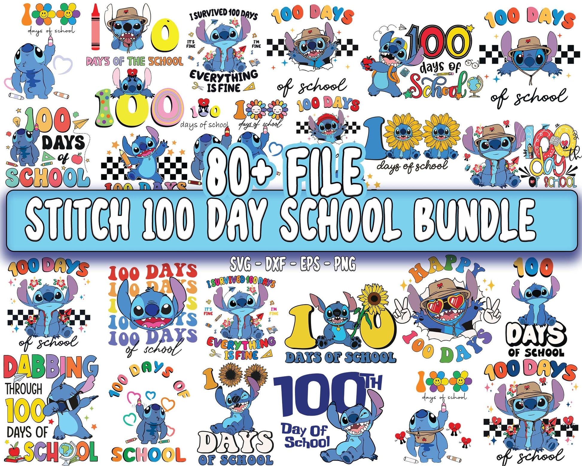 Stitch 100 day school bundle svg, 80+ file 100 day school SVG DXF PNG EPS , cricut , file cut , Silhouette, digital download, Instant Download