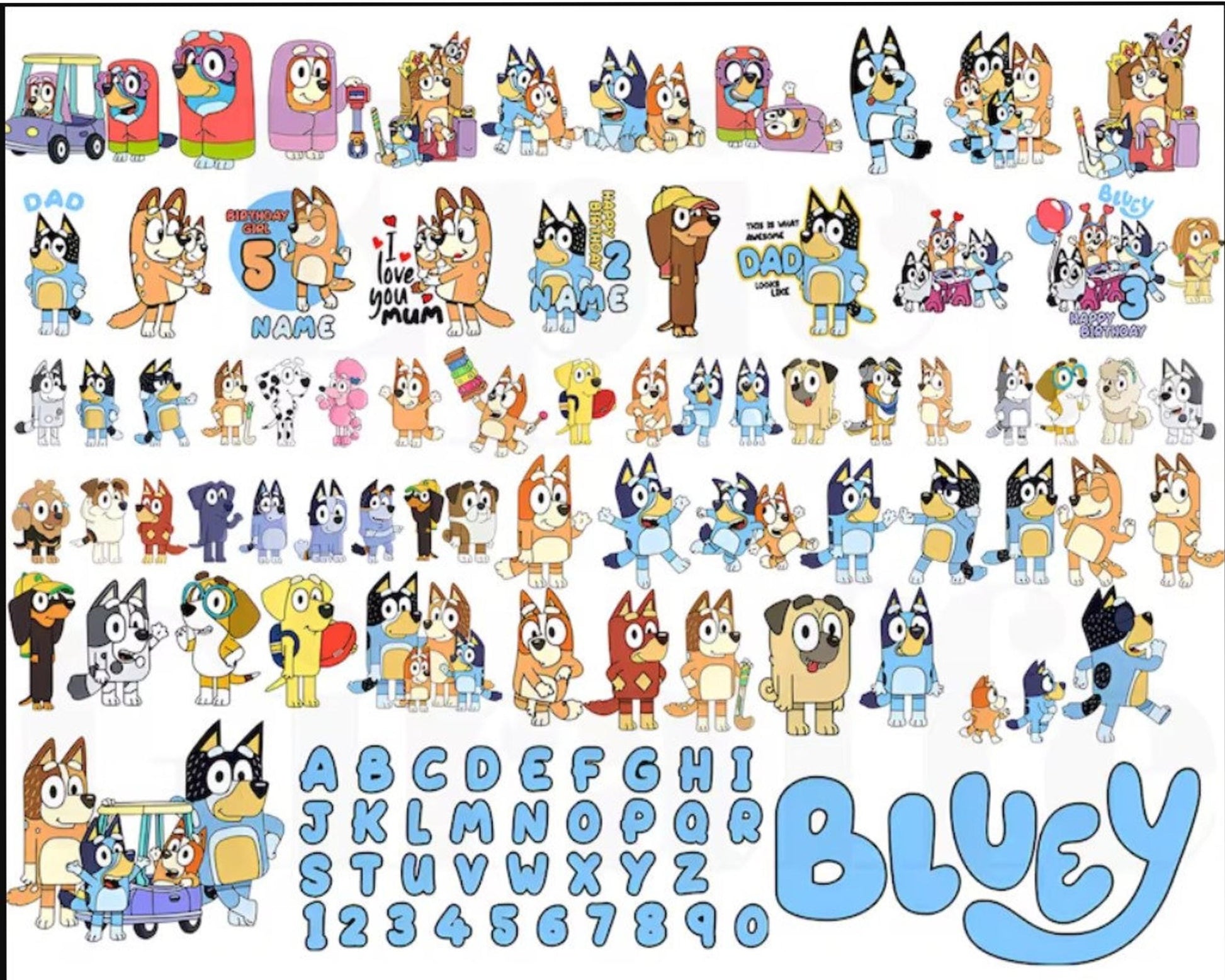 Mega Bluey Bundle Png, Bluey Family Bundle, Bluey And Bingo SVG DXF EPS PNG, for Cricut, Silhouette, digital download