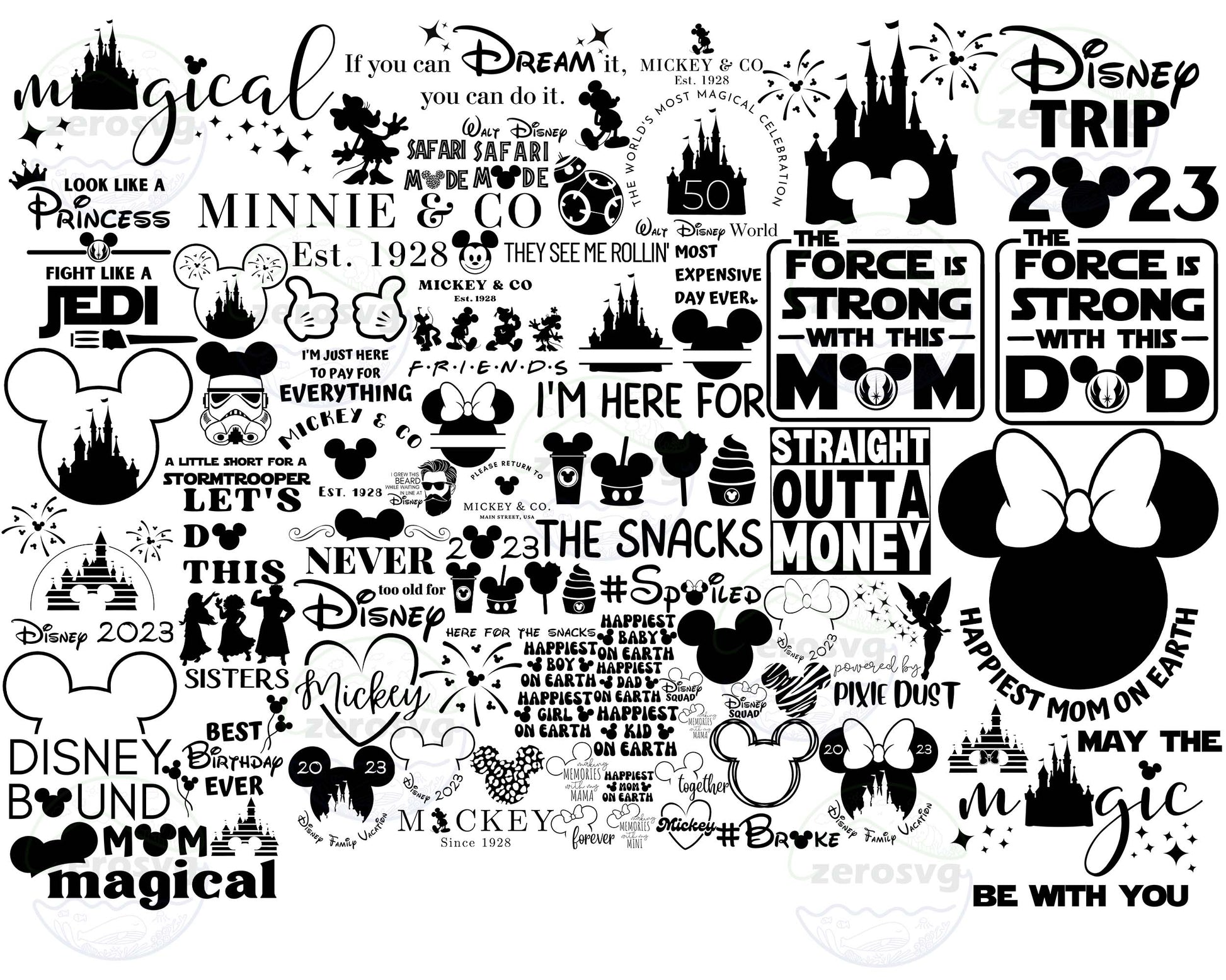 Disney SVG Bundle - 70+ file disney bundle SVG, EPS, PNG, DXF for Cricut, Silhouette, digital download