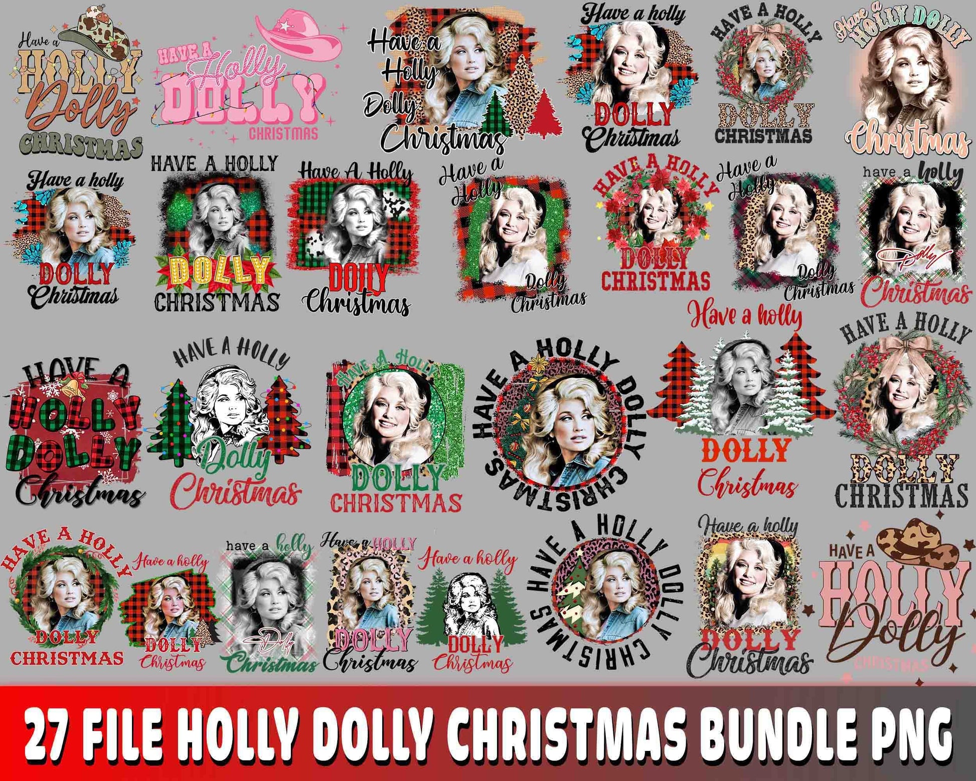 Have A Holly Dolly christmas Bundle PNG , 27 file Have A Holly Dolly christmas Bundle PNG , file cut , Silhouette, digital download, Instant Download