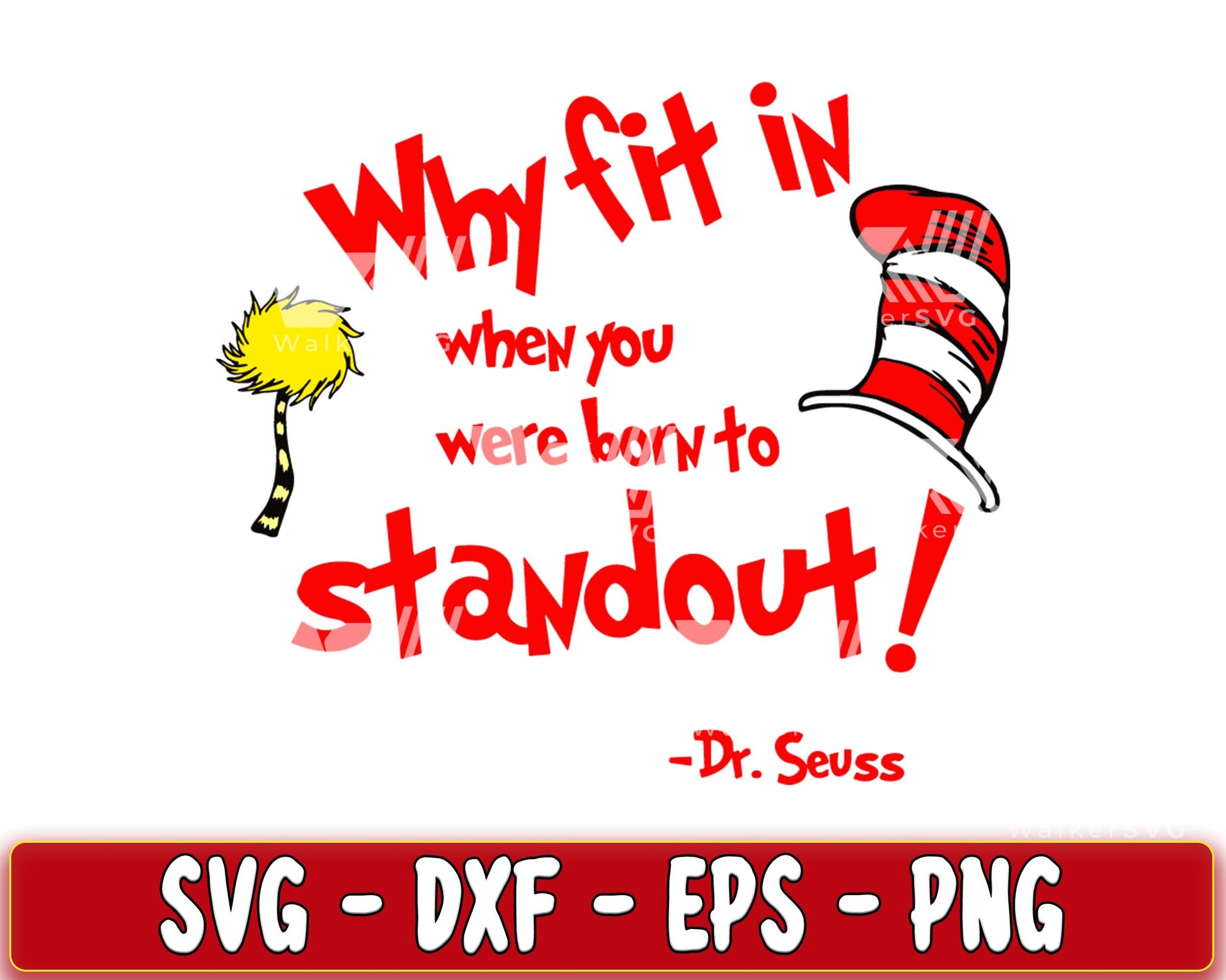 Why fit in when you were born to stand out dr seuss cat in the hat quotes SVG, EPS, PNG, DXF , cricut , file cut, for Cricut, Silhouette , digital download, Instant Download