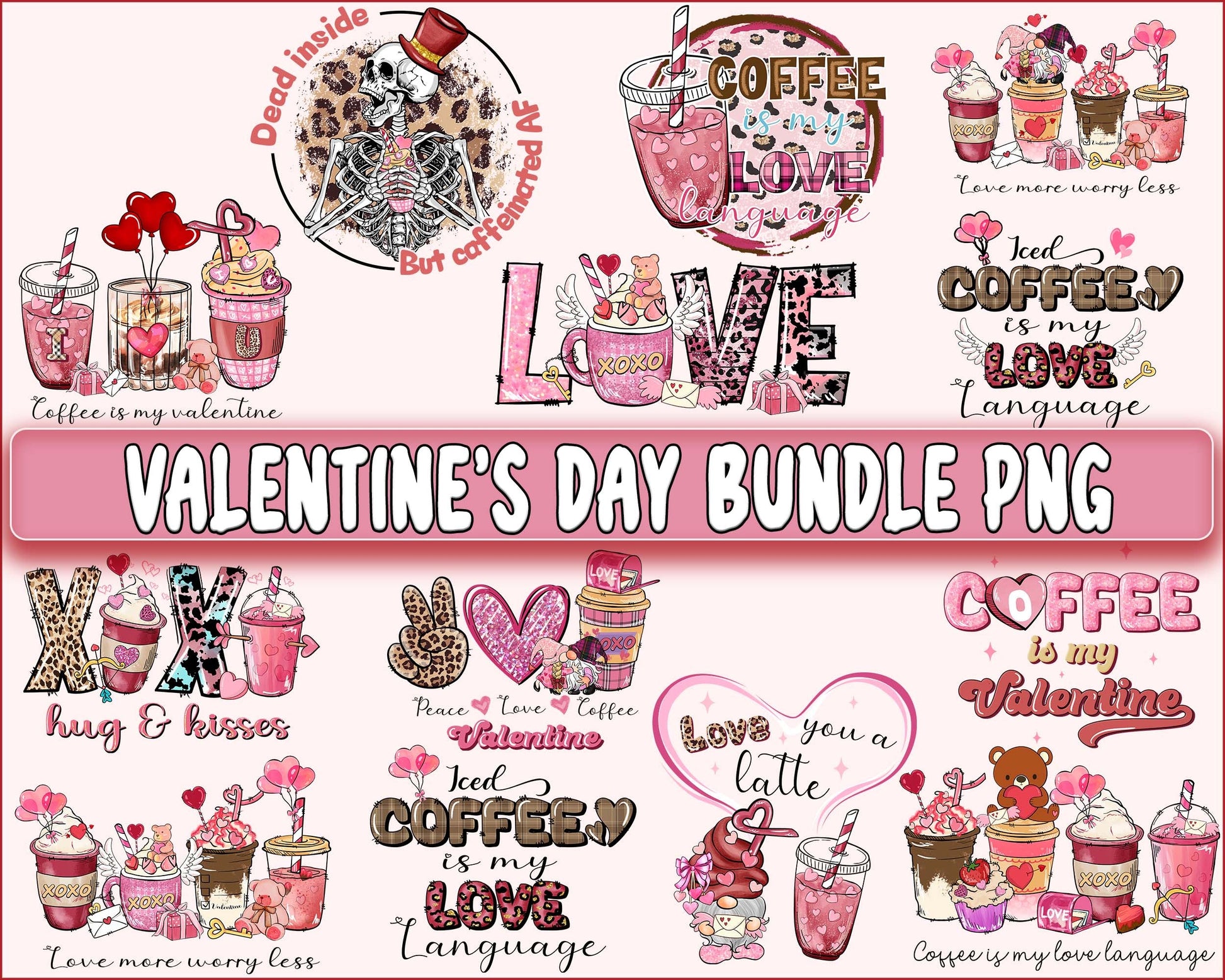 Valentine's day bundle PNG , Skeleton ,coffee valentine's day PNG, Valentines Day Sublimation ,Love , Heart valentine's day sublimation, Digital Download, Instant Download