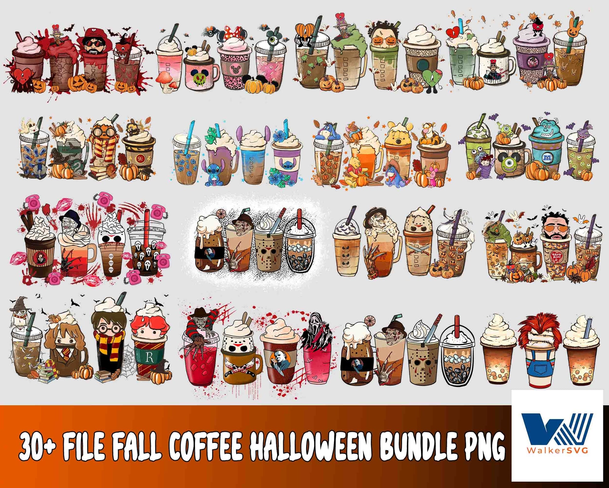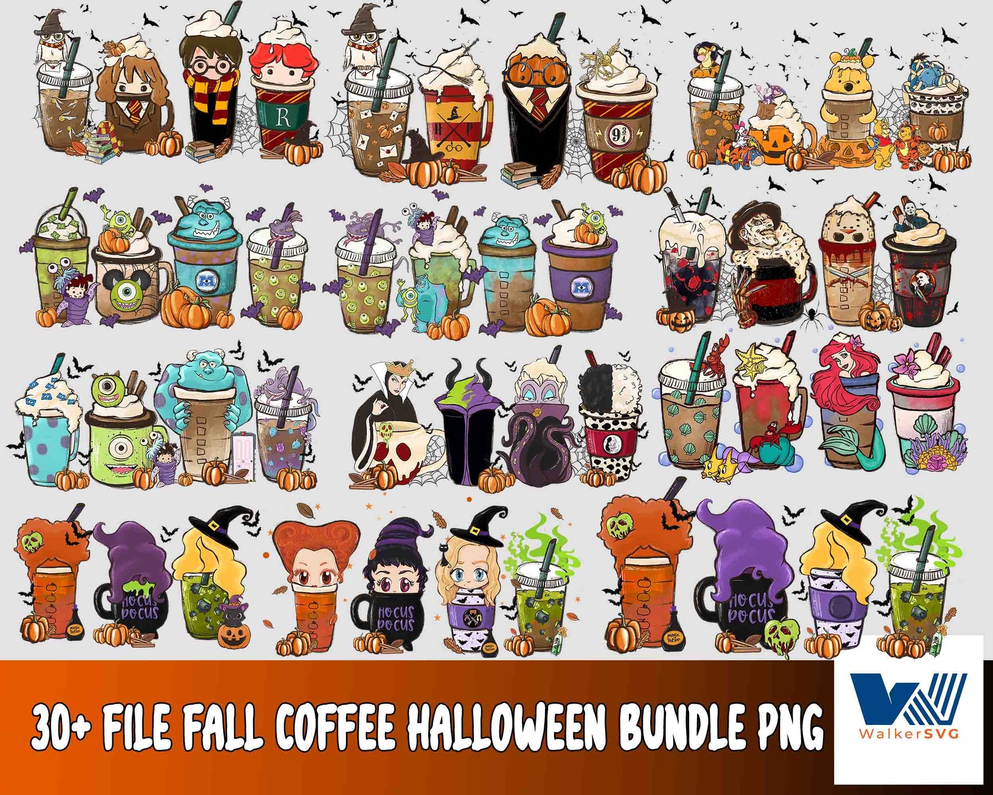 Fall Coffee bundle png,30+ file Fall coffee halloween bundle PNG ,bundle halloween PNG , Silhouette , Digital download