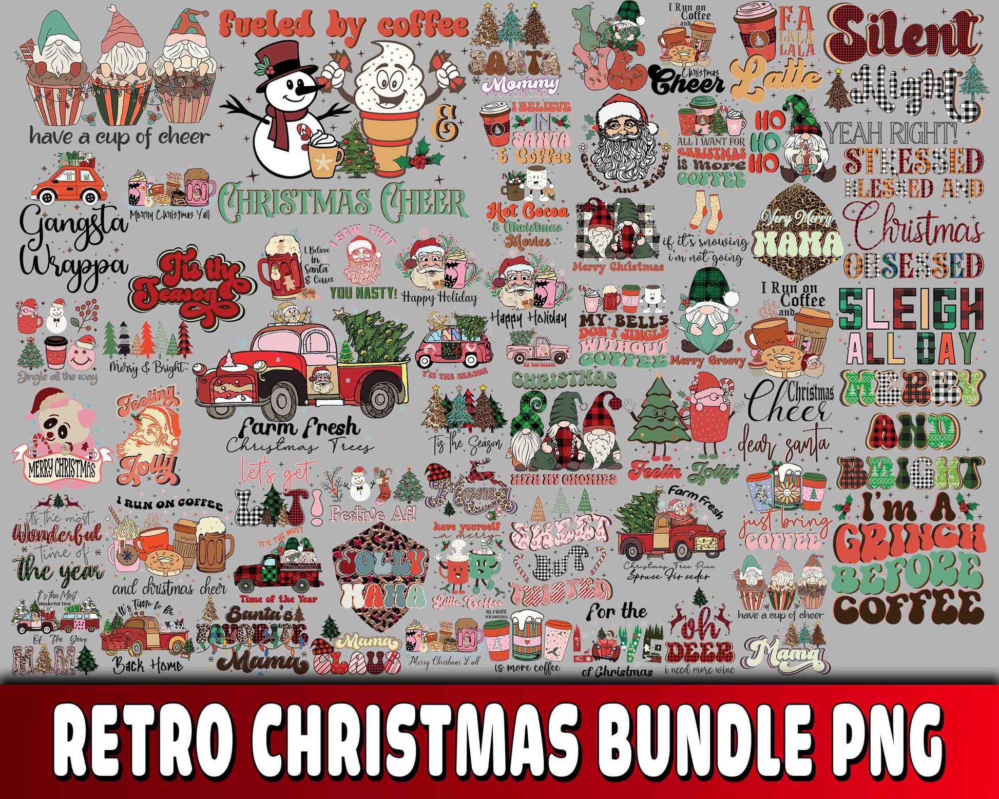 Retro christmas bundle PNG , Mega bundle Retro christmas PNG 9 , file cut , Silhouette, digital download, Instant Download